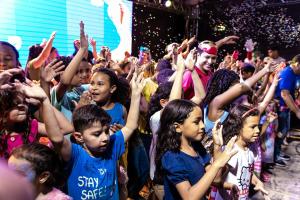 Encerrando o dia em grande estilo, os pequenos participaram de sorteios, dançaram ao som dos palhaços Bolim e Bolãp, se divertiram e levaram para casa lembranças cheias de cor e alegria.